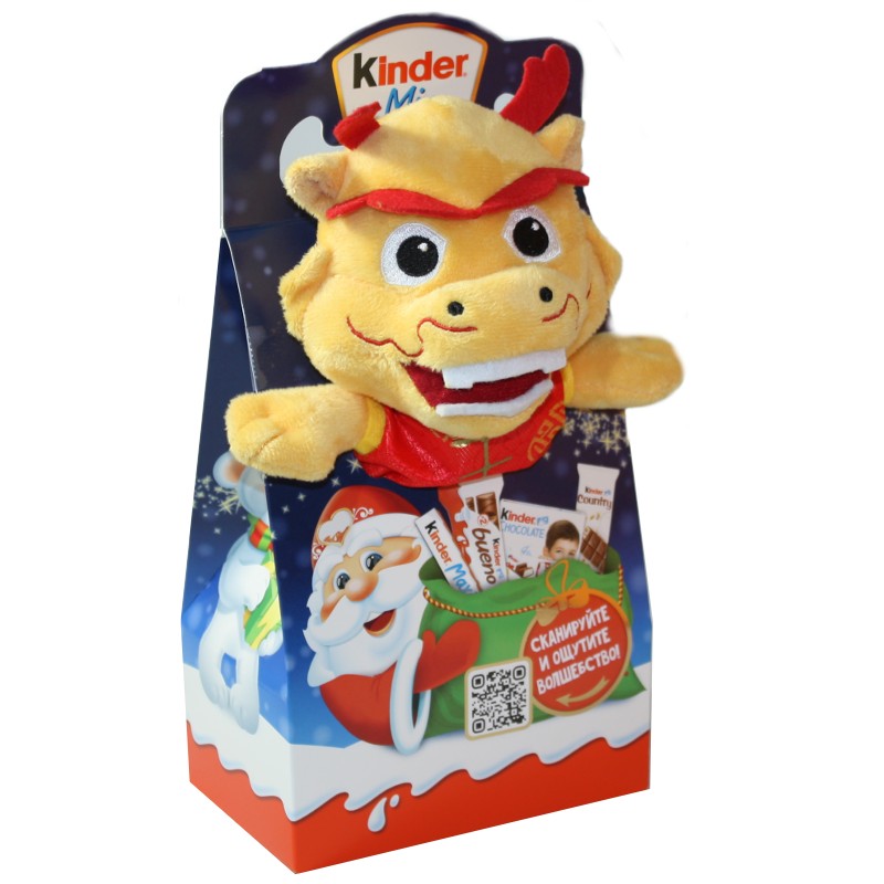 Оригинальная мягкая упаковка в виде символа года с лучшим набором сладостей и шоколадом от Киндер очень понравится ребенку.