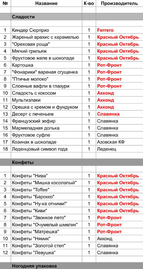 1. Проверить, можно ли внести изменения в состав подарка. Если нет, то скорее всего наборы были собраны еще летом из конфет, произведенных еще раньше